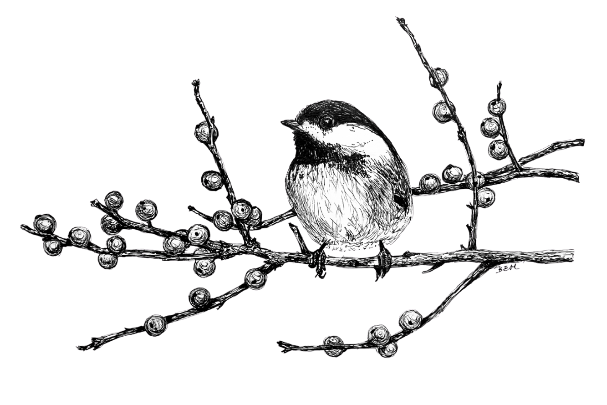 This chickadee is not the first bird I saw this year - I actually haven't seen a chickadee yet this year, although I did see quite a few at the end of December, but it's my favorite bird so I wanted to start the year off with a chickadee illustration.